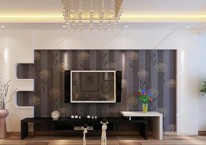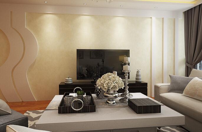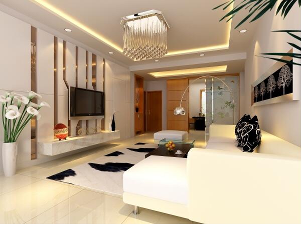 吊頂的顏色可以用白色的,然后再安裝上一張黑色比較有大氣風范的吊燈,把電視墻用簡單的石膏板圍起來,這樣就算沒有任何鮮亮的裝飾,但是看起來卻別有自己的一番風情。電視機的下面可以放一張實木紅棕色的電視柜,地板可以采用淺色系的木地板,這樣客廳就可以營造出一種寧靜淡然的氣氛,給用戶帶來不一樣的享受。