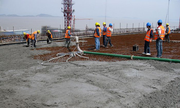 施工工人先將水泥、骨料等外加劑按照重量計量,由于陶粒事先進行了水悶處理,所以在攪拌之前要抽測陶粒混凝土的含水率,再調整配合比的用水量。