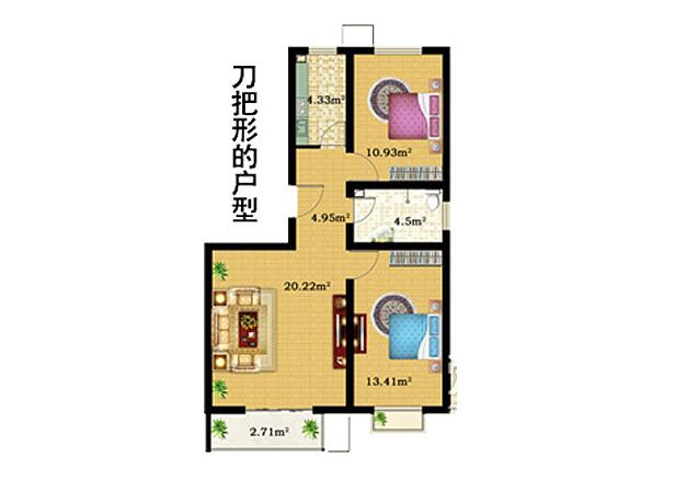 刀把戶型的格局不好,偏狹窄,居住在該房子中,人們會感到憋悶、壓抑。另外,刀把戶型的采光、通風效果也較差。