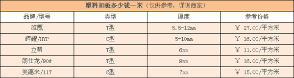 2、pvc塑料扣板寬度:常見的有20cm、25cm、30cm等;
