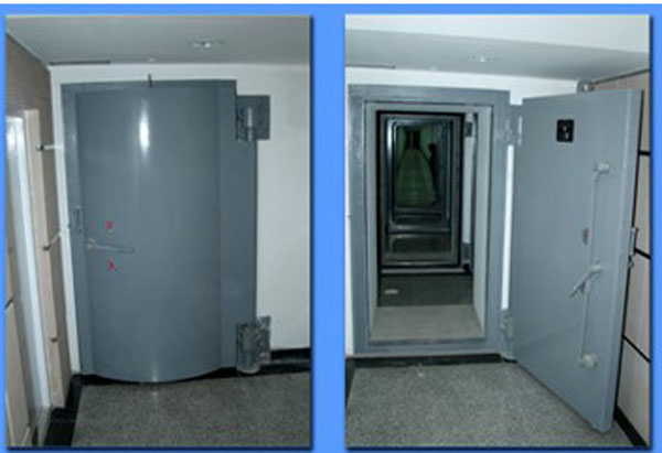 防護密閉門設置在出入口最外側,具有阻擋沖擊波和隔絕毒劑兩種功能。防護密閉門應能阻擋沖擊波,滿足相應的抗力要求。選用時,不僅應滿足洞口尺寸的需要,還應滿足設計壓力要求。鋼結構門雖然價格較高,防早期核輻射性能也較差,但因其自重較輕,啟閉靈活,故通常用于尺寸相對較大的車輛出入口。防護密閉門有很多分類,如人防防護密閉門、鋼制防護密閉門、鋼筋混凝土防護密閉門。