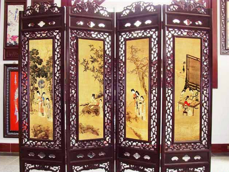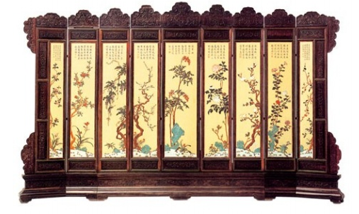 ????? 3、清代象征王權統治的皇宮座古典屏風,是清代家具中的大器,其宏大氣度和精湛工藝,充分顯示了皇家的特殊審美情趣。另外,明清時期民間古典屏風制作技藝也十分精美,如江浙藝人選用紅木為古典屏風主材,在古典屏風上鏤雕、彩繪上山水、人物、花卉、魚蟲、樓閣等圖案,頗具江南地方風采;福建,安徽屏風,則以裝飾富麗、鑲嵌豐滿、用料考究、堅實耐用而見長;北京、山東、廣東、四川、山西、湖南、陜西等地的古典屏風,其制作工藝均具相當成就,曾出口到日本、韓國、朝鮮、泰國、印尼及歐美等國家和地區,享有頗高聲譽。