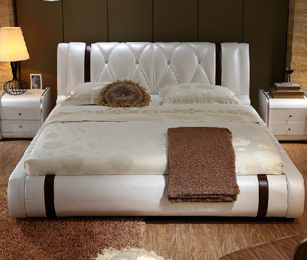 5、請(qǐng)根據(jù)喜好選擇是否購買皮床,一般在決定買軟床的時(shí)候,很多消費(fèi)者其實(shí)并不清楚自己到底買布藝床呢還是皮床。不妨根據(jù)布藝床和皮床的各自特點(diǎn)來決定是否購買。如果你需要營造高貴優(yōu)雅的臥室環(huán)境,皮床大氣莊重會(huì)是不錯(cuò)的選擇。如果你是個(gè)浪漫多情的人,色彩繽紛的布藝床會(huì)更合你的胃口。總之買軟床要切合自己的實(shí)際,否則昂貴的皮床買回家又不喜歡豈不浪費(fèi)。