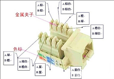 第二步:開始打線,先不要拆開各線對,在將相應線對預先壓入打線柱時才拆開。按照信息模塊上所指示的色標選擇我們偏好的線序模式(注:在一個布線系統中最好只統一采用一種線序模式,否則接亂了,網絡不通則很難查)。