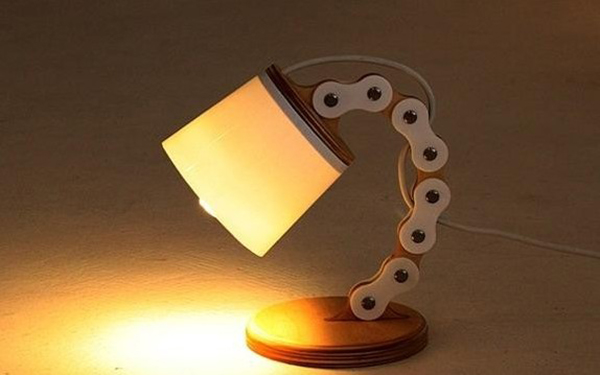 這一款就很有特色了,整個臺燈就是一個玻璃酒瓶,瓶身上還有一些外文字。開啟燈光的時候,部分外文字還會被映襯在墻壁上,斑斑駁駁,很有年份的味道。配合暖黃色的燈光,讓家里頓時有了古典情懷。在看到這款設計之前,我猜你應該沒有想到過,原來玻璃瓶也能變成臺燈。