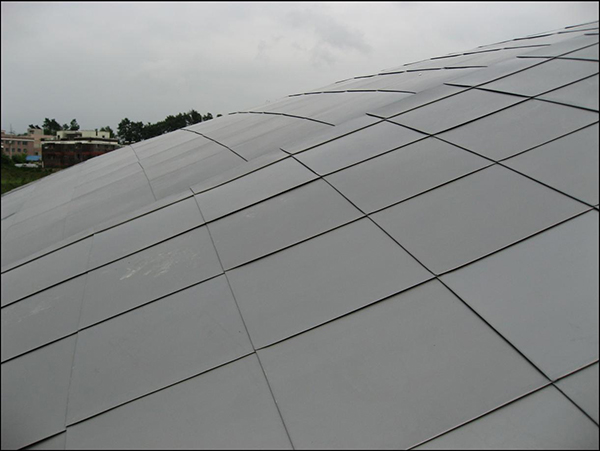安裝:將鈦鋅板安放到相應位置上,將鈦鋅板的邊緣與各起始點重合,然后與屋面檁條采用自攻釘固定,鈦鋅板在起始線方向上的搭接的接頭應設置于檁條上面,嚴禁在檁條跨度中間進行搭接。