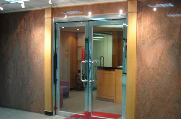 夾絲防火玻璃門是通過壓延法制造而成的一種玻璃,先將已經加熱好的鋼絲網放置在玻璃板中,當鋼絲網冷卻之后切割成一定大小的玻璃片,夾絲防火玻璃門就形成了。這種玻璃門遇到高溫的時候,雖然玻璃本身會較快地軟化,但是由于有鋼絲網在玻璃中起到加固的作用,玻璃門不會發生爆炸現象,從而保護人們的安全。除了防火功能之外,這種玻璃還能夠起到一定的防盜作用。