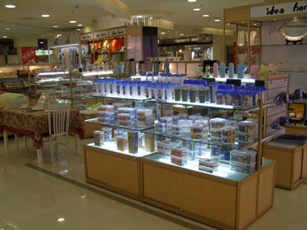 (2)評估展示柜與通道走向、樓梯間、自動扶梯平面位置的硬件環境關系;評估展示柜處于主通道邊還是次通道邊;評估展示柜在整體賣場的位置類級,是否處于死角位置,目的是明確整體形象設計的構思與創意,確定設計空間結構和視覺關注點。