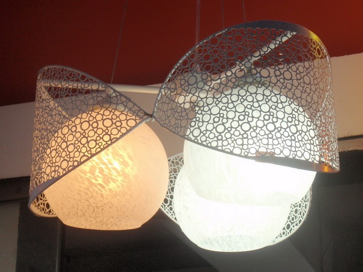 6、如果空間夠高,可以在天花上安裝透明或半透明的吊燈作為光源,吊燈這時不僅可以提供絕佳的照明,還是很好的裝飾物品。