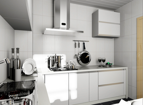 1、一字形櫥柜:就是將所有的電器和柜子都沿著一面墻放置,工作都在一直線上進行。這種緊湊、有效的窄廚房設計,適合中小家庭或者同一時間只有一個人在廚房工作的住房。如果您在大廚房運用這種設計,就可能造成不同功能之間的距離太大。可以考慮使用雙排連壁柜或增加連壁高柜,最大限度地利用墻面空間。