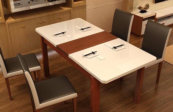 由于可伸縮餐桌必須具有拉伸的性能,因此大多都采用實(shí)木材料來(lái)進(jìn)行制作。實(shí)木材料具有厚重感和很強(qiáng)烈的質(zhì)感。用實(shí)木材料制作的可伸縮餐桌在拉伸的時(shí)候,不會(huì)有太大的聲音。而如果采用其他材質(zhì)制作可伸縮餐桌,比如大理石、玻璃等,都會(huì)碰撞出刺耳的聲音。