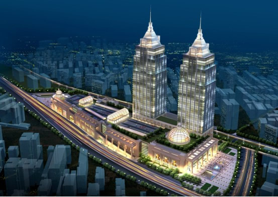 項目總建筑面積達43萬平方米,由四層主體商業裙房,兩棟44層辦公樓及三層地下室組成,其中地下一層、地下二層都是地鐵站有全敞開式的聯結。