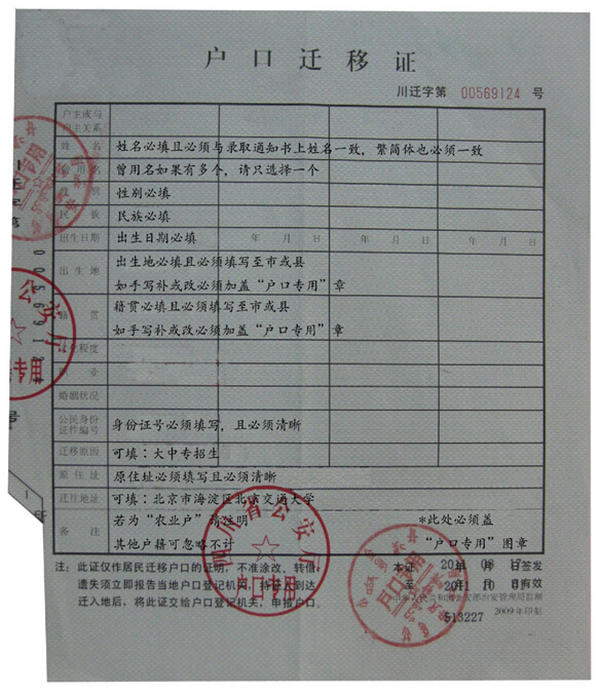 3、屬分房、購房、建房辦理遷移的,需附交房產證復印件。憑入戶派出所開具的準予遷入證明,到遷出派出所辦理《市內遷移證》后,再到入戶派出所辦理遷入手續。
