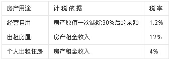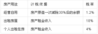 計算依據采用從價計稅和從租計稅,具體稅率如下: