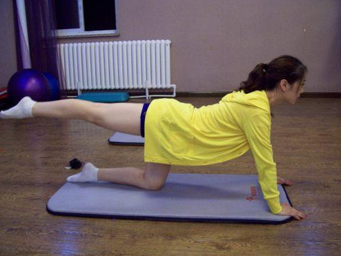 找一把椅子,扶著椅背,一腳站直,另一腳在空中向后伸展,約2秒后,再放下,動作可重復(fù)10至15次,接著換腳再做。