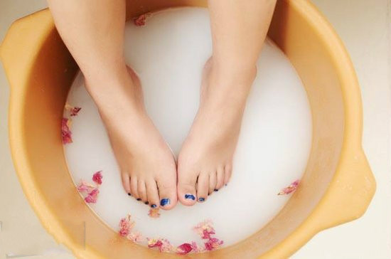2、坐在一把舒適的椅子上,雙腳放進水桶中,基本的浸泡時間是15~20分鐘。