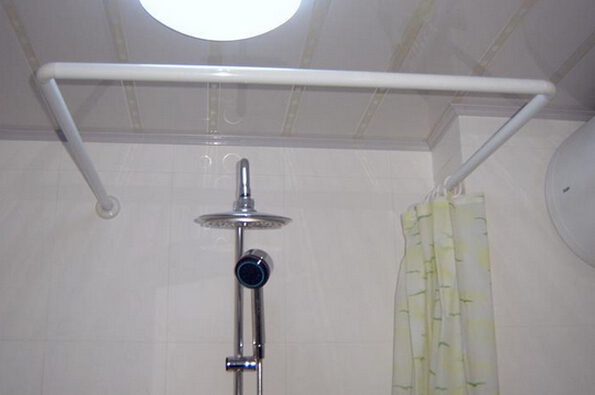 2、如果淋浴區(qū)只有兩面有墻,那浴簾桿只能選擇那種圓弧的鋼管固定在墻上了,這種固定的圓弧鋼管有一個(gè)弊端就是由于受力不均,時(shí)間長(zhǎng)了容易發(fā)生松動(dòng)。