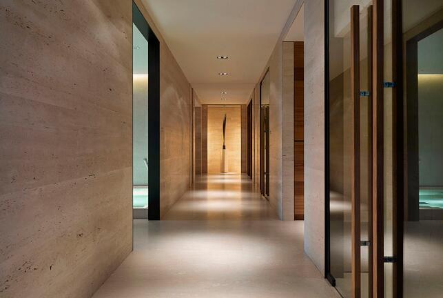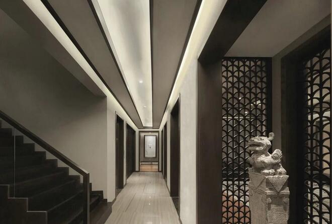 如果是在大空間內的開放式過道,就可以從頂面和地面來區分它的用途和空間的大小。比如,可以做大讓地面的造型和上面的材料相呼應,也可以在地面做一些地之類的來進行引導。這樣可以把主要的功能顯現出來。總體來說,開放性的過道要注意和周圍環境的融合,這是十分重要的。