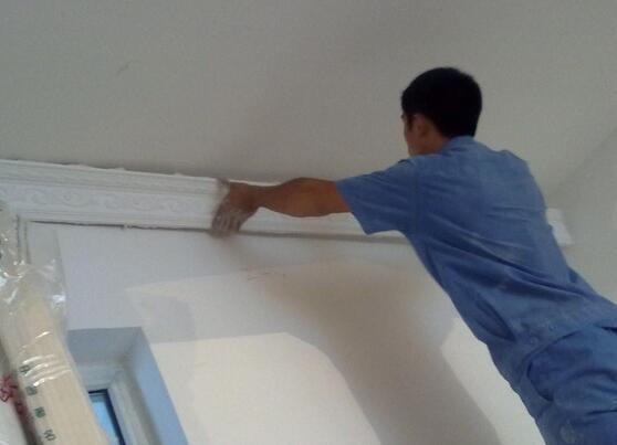 (1)頂角石膏線的基層處理要到位,比如說:什么時候貼上去最合適?怎么樣算是達標?而且墻面必須用靠尺來檢查,合格之后,才能進行下面的步驟。