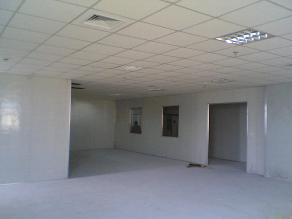 2、整個施工工序的流程為基層清理,彈線,吊筋,主次龍骨依次安裝,校正,安裝巖棉板以及成品保護。