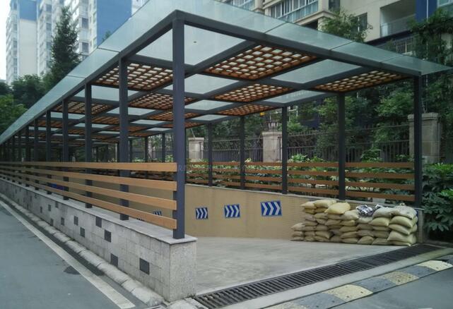 鋼結構玻璃雨棚的頂部采用鋼化玻璃或夾膠安全玻璃,具有安裝方便、通透性強的特性。而防水性鋼結構玻璃雨棚采用鋼化夾膠玻璃和鋼結構制作完成的,具有防水性高、造型大方等特點,一般在辦公樓出入口、住宅出入口、商業大廈出入口、地下車庫出入口應用較多。