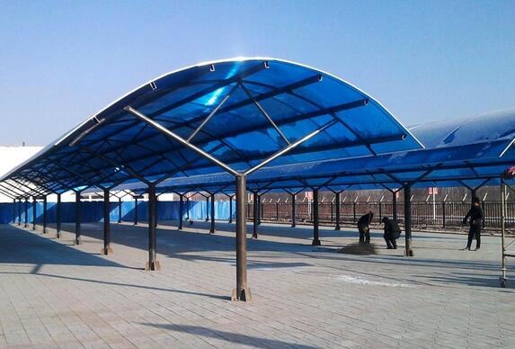 PC板雨棚可分耐力板雨棚和陽光板雨棚,因為是塑料雨棚,所以安裝方便、價格便宜,還具有較好的康復新、耐熱性等,適應各種惡劣天氣所帶來的影響。根據不同的顏色,透光率在12%-88%左右。一般在溫室棚,菜棚、廠區車棚應用較多。