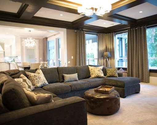 2 藻井式吊頂設計方法:藻井式吊頂的式樣是在房間的四周進行局部吊頂,可設計成一層或兩層,裝修后的效果有增加空間高度的感覺,還可以改變室內的燈光照明效果。
