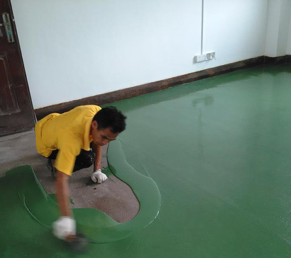 5、耐磨層:本工序可根據(jù)用戶需要選擇使用;溶劑型環(huán)氧面漆施工完畢12~24小時(shí)后,即固化至行人不留印跡后,用環(huán)氧耐磨層面漆滾涂一遍,可大大提高地坪光潔度和耐用性。