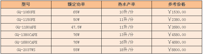 ? ? ? 能率燃氣熱水器包括聚能泉系列、智尊泉系列(冷凝機)、靈智泉系列(恒溫機)、智能泉系列(恒溫機)、平衡機系列(恒溫機)、四季型系列(非恒溫機)和室外機系列(恒溫機)。