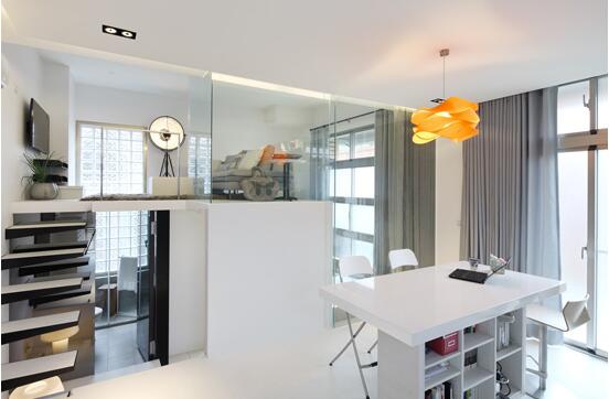 小戶型loft不大,因此厚重的隔斷要慎用,可以用一些實用又不缺少裝飾性的隔斷,比如說書柜。
