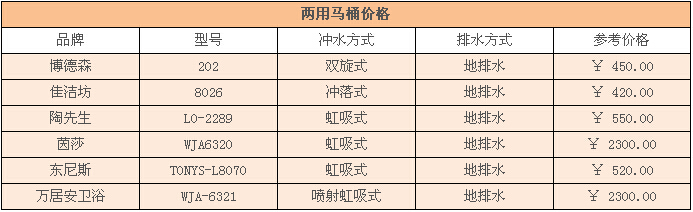 馬桶和蹲便器各有優勢,也各有缺點,兩用馬桶就解決了這個煩惱。以后在家里也不用即安裝馬桶又使用蹲便器了,解決了家庭成員的不同需求。但是兩用馬桶,蹲在上面時,馬桶內膽的水位落差很高,比普通蹲便器高不少,落便點如在深水區會濺起很高的水花,對于老人和小孩老說不是很好使,因為多為蹲便器使用時,腳踏位置偏高,容易摔倒。