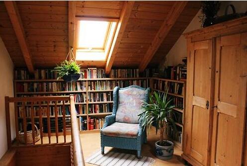 閣樓書房可分為閱讀區、藏書區、學習辦公區、休閑區,如果面積并不是很大的話,應保留基本的學習辦公區和藏書區。如果面積夠大的話,還可以分成其它的區域,充分利用閣樓空間。