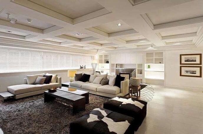 (3)大平米的房子中一款合適的天花吊頂能夠提升整體品位,但是太規則太方正的吊頂形狀,會讓人感覺天花區域感太強烈。可以考慮做異形吊頂或者選擇木制、鋁制的格柵吊頂。