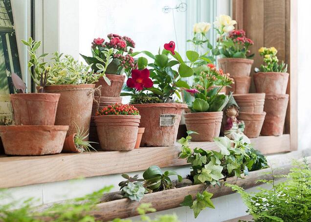 (1) 準備一個或多個紅陶花盆、土壤若干、小多肉小綠植若干。