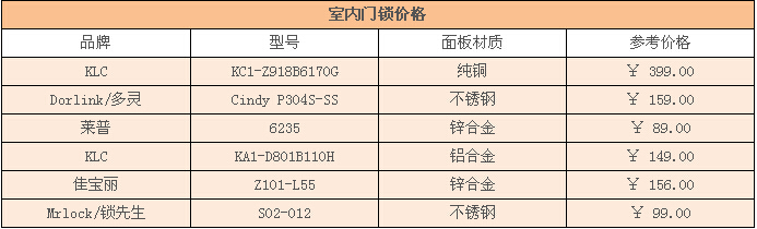 市場上的室內(nèi)門鎖材料基本分成不銹鋼、銅、鋅合金.不銹鋼強(qiáng)度高、耐腐蝕性強(qiáng)、不變色,是最佳的造鎖材料;銅比較通用,機(jī)械性能優(yōu)越,價格較高;高品質(zhì)鋅合金堅(jiān)固耐磨,耐腐蝕性強(qiáng),且容易成型,多用于中檔鎖.