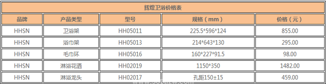 ?、圯x煌衛浴的榮譽:輝煌水暖集團是中國五金制品協會副理事長單位、中國建筑衛生陶瓷協會衛浴分會執行理事長單位,公司旗下的“HHSN”商標曾獲得中國馳名商標,而且該公司還先后獲得中國名牌產品、中國節水認證、中國十大衛浴品牌等一系列榮譽。