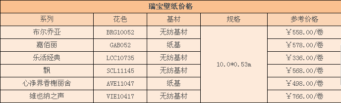 3瑞寶壁紙價格
