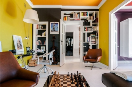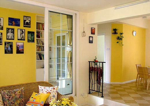 2、溫馨的暖黃色點亮墻面,讓燦爛的陽光充滿小復式家中。搭配松木的原始質感,營造原汁原味的鄉村風韻。