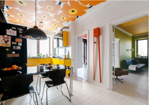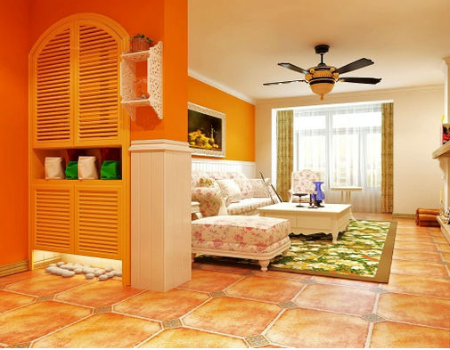 1、紅黃相搭,制造絢爛光線,燈光的照射將整個空間都渲染成了可愛的橙色。暖暖的橙色,陽光照射進來,更是溫暖。寬敞的客廳,適當的擺設恰到好處起到調節溫暖視線的效果。