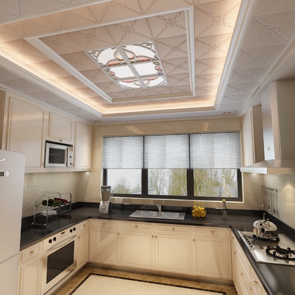 3、廚房、衛(wèi)生間吊頂宜采用金屬、塑料等材質(zhì)。衛(wèi)生間是沐浴洗漱的地方,廚房要燒飯炒菜,盡管安裝了抽油煙機和排風扇,仍然無法把蒸氣全部排掉,易吸潮的飾面板或涂料就會出現(xiàn)變形和脫皮。因此要選用不吸潮的材料,一般宜采用金屬或塑料扣板,如采用其他材料吊頂應(yīng)采用防潮措施,如刷油漆等。