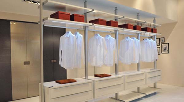 普通衣桿:衣帽間的掛衣區要寬敞,每一件吊掛的衣物,都要保持適當的距離,不要擁擠在一塊兒。絲質、純皮、麂皮等面料的褲子、裙子在用衣夾吊掛時,夾子與衣服之間要墊一層紙,以免產生難看的夾痕。