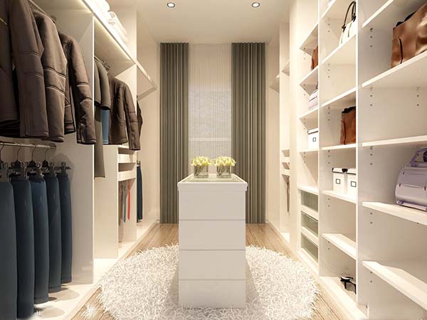 如果說客廳是家庭的臉面,那么衣帽間就是心臟,讓人們?cè)讵?dú)處之時(shí)找回自信,塑造最完美的自我。一般來說只要有4~8平方米的獨(dú)立空間即可安置一個(gè)美觀實(shí)用的衣帽間,開放式的靈活組合,方便各種貴重衣物有條理地集中存儲(chǔ)及取放。