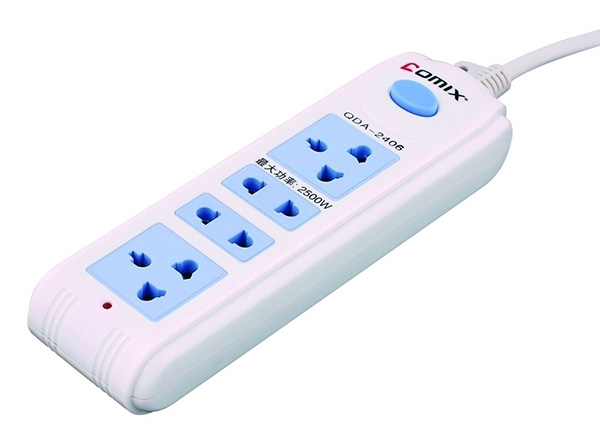 當插座板負載達額定電流的400%時,過載保護裝置在0.5~5.5秒內動作,自動斷開電源;
