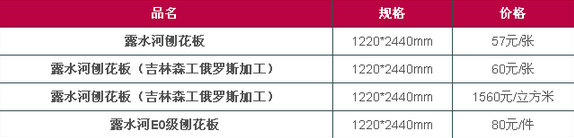 露水河板材的價格要看它的種類、規格等因素,統一規格,不同種類,不同加工地,其價格也是不同的。以下價格信息僅供參考,具體以實際情況為準。