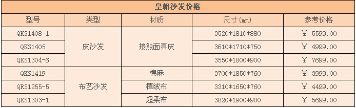 皇朝沙發有很多種風格,有古典的、簡約的、現代的等,主要還是以現代風格為主,設計新穎個性、簡潔大方,高貴優雅的設計,彰顯知性之美,帶來簡單、愜意、舒適的生活空間。同時,皇朝沙發還注重沙發的實際使用,設計處處體現人性化,從國人的使用習慣出發,制造出溫馨、貼心的沙發。