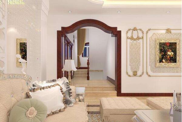 (2)歐式風格:歐式風格需要使用的包埡口比較寬大,所以為了經濟起見,最好的歐式風格的包埡口材質就是木材,用木線條為包埡口四周收邊,然后鋪設花色合適的壁紙或者做一些羅馬柱的裝飾,都是很不錯的選擇。