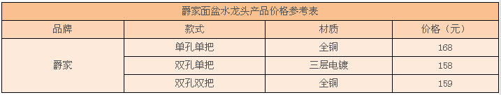 爵家水龍頭有不同的產(chǎn)品系列和型號,不同的產(chǎn)品有各自的功能和用途,爵家水龍頭價格分布較廣,上表僅給出了略微低端的產(chǎn)品價位,適合預算有限的用戶運用,高端的產(chǎn)品價格300-1000左右,目前網(wǎng)上沒有給出高端產(chǎn)品介紹,消費者可自行到當?shù)鼐艏覍Yu店或授權代理商了解咨詢。