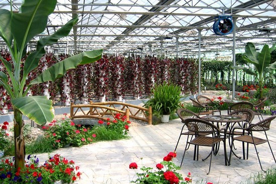 綠色生態餐廳完全按照標準溫室的結構建造,多采用文洛式,覆蓋材料多為PC板或者玻璃,結構保溫性能好,整齊規范,室內各個空間溫度均勻,有利于景觀植物的生長,鑒于餐飲布局的需要,在文洛溫室結構的基礎上,可進行局部調整。