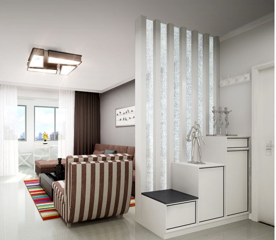 3、玄關隔斷的實用性不可小覷,可以放雨傘、換鞋、擱包等。最好的玄關隔斷設計方向就是將衣櫥、鞋柜和墻面一起相融,將它們各自的功能巧妙地體現處理,且外觀要與整體風格相符,并與客廳或廚房裝飾達到和諧。