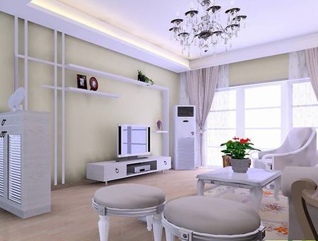 中心色為玫瑰色和淡紫色,地毯用淺玫瑰色,沙發(fā)用比地毯濃一些的玫瑰色,窗簾可選淡紫印花的,燈罩和燈桿用玫瑰色或紫色,放一些綠色的靠墊和盆栽植物點(diǎn)綴,墻和家具用灰白色,可取得雅致優(yōu)美的效果。